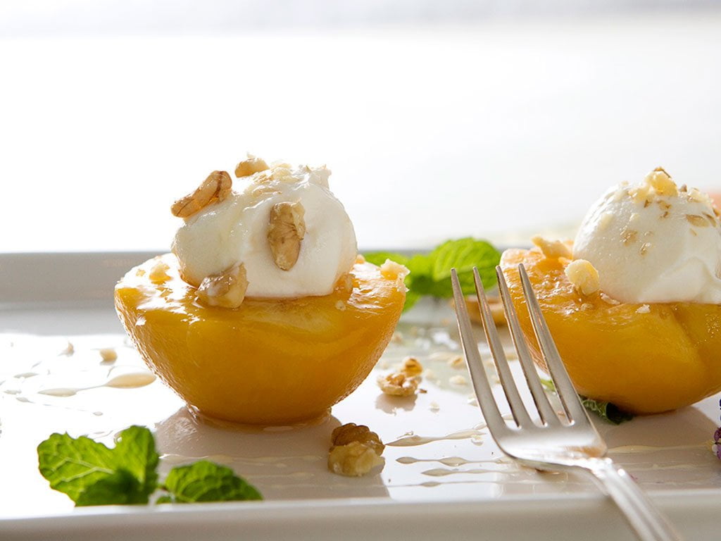Ao invés da sobremesa, a ideia é servir os pêssegos como entrada.