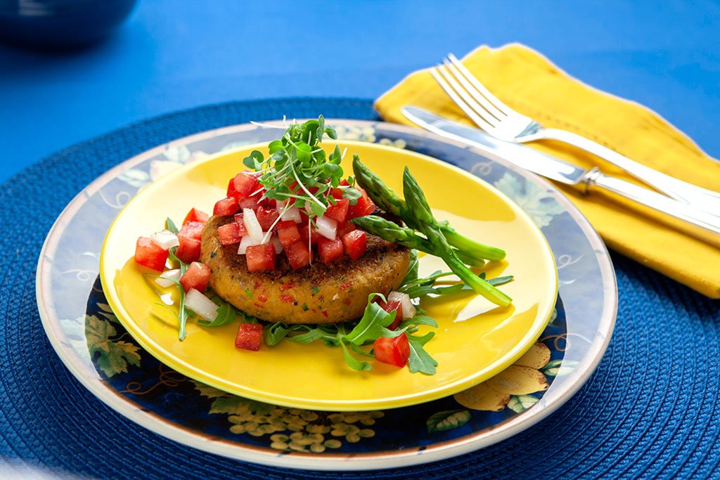 Coloque o polpetone e, sobre ele, acrescente vinagrete.